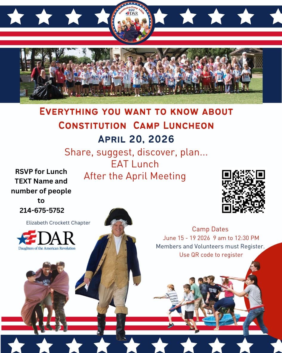 Registration will open for 2026 Constitution Camp April 1. Email constitutioncamp@gmail.com for any questions. We are so excited that you will be joining us! You will receive an email with location and other information soon.